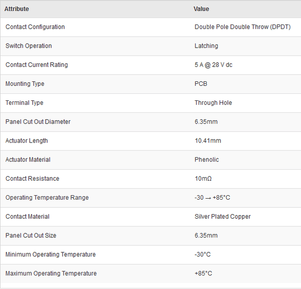 TE Connectivity Double Pole Double Throw (DPDT) - 2-1825138-3