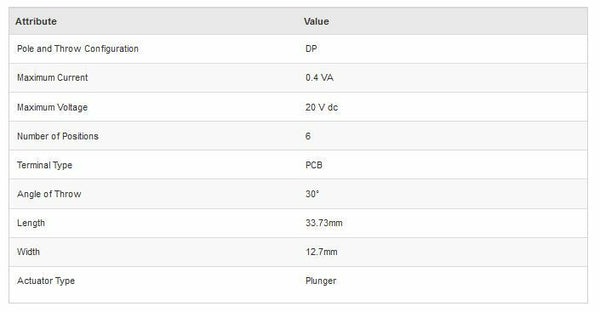 TE Connectivity 1825537-2 DP 6 Position 30° Rotary Switch, 20 V dc, Plunger Actuator - New - Brand new item, still in OEM packaging  - Check out the images for more product details Product details:- - Miniature Rotary Switches, IP67-...View more