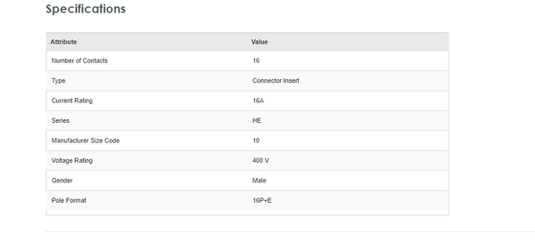 TE CONNECTIVITY 1-1103638-9 HE Series size 10 Connector Insert, Male, 16 Way, 16A, 400 V - Brand new item, still in OEM packaging  - Check out the images for more product details Product details Male and female inserts will fit...View more