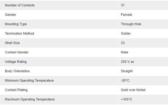TE Connectivity 37 Pole Through Hole Connector Socket 23 Shell Size Male Contact -Brand new item, still in OEM packaging  -Check out the images for more product details Product Details: Manufacturer: TE Connectivity Manufacturer Part Number: 1-206934-1 Number of Contacts: 37 Gender:...View more