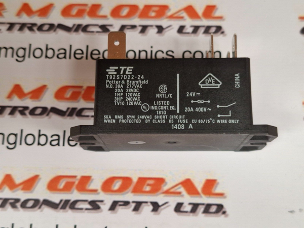 Power Relay, DPST-NO, 24 VDC, 30 A, T92, Panel Mount, Non-Latching PCB Relay DPST-NO 30A 24Vdc - TE CONNECTIVITY - T92S7D22-24 Product Information Contact Configuration: DPST-NO Coil Voltage: 24VDC Contact Current: 30A Product Range: T92 Relay Mounting: Panel Mount Coil Type: Non-Latching Contact Voltage VAC: 277V Relay Terminals: Quick...View more