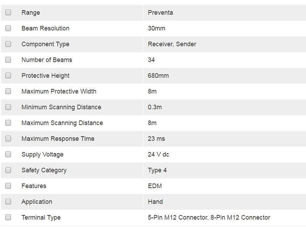 Telemecanique Light Curtain Sender & Receiver 34 Beams 30mm Res - XUS-LBR5A0680