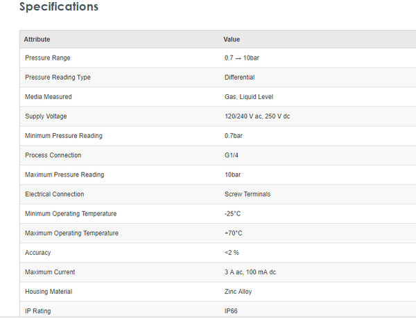 Telemecanique XMLC010B2S12 Sensors Gas, Liquid Level Differential Pressure Switch 0.7 → 10bar, 120/240 V ac, 250 V dc - Brand new item, still in OEM packaging  - Check out the images for more product details Product details Osisense XML pressure...View more