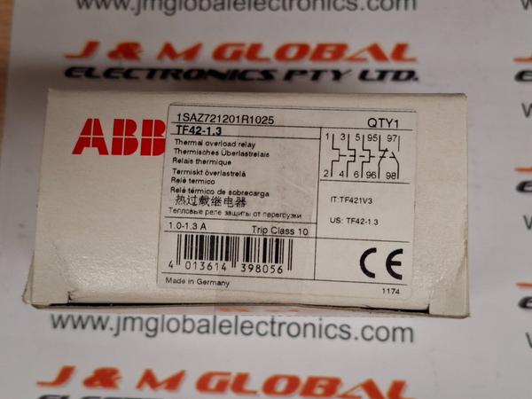 ABB Thermal Overload Relay 1NC/1NO, 1.0 → 1.3 A F.L.C, 1.3 A Contact Rating, 600 V dc, 3P - TF42-1.3 PRODUCT DETAILS: The TF42-1.3 thermal overload relay is an economic electromechanical protection device for the main circuit. It offers reliable...View more
