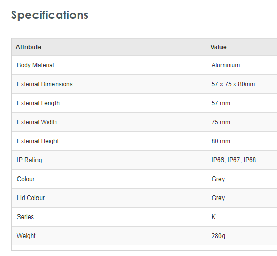 Weidmuller 57330 K Aluminium Enclosure, IP66, IP67, IP68, 57 x 75 x 80mm - Brand new item, still in OEM packaging  - Check out the images for more product details Product details: These enclosures are equipped with stainless steel captive...View more