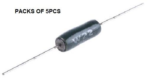 Welwyn W22-R10JI Series Axial Wirewound Resistor 100mΩ ±5% 7W ±200ppm/°C (pack of 5pcs) - Brand new item, still in OEM packaging  - Check out the images for more product details Product details W22 Series are Impervious lead free Vitreous Enamelled...View more