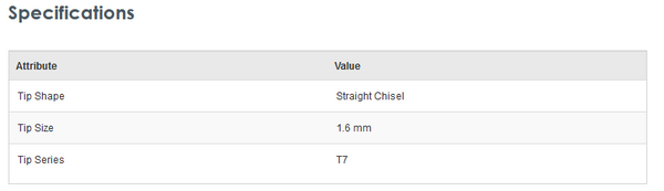 Hakko T7-D16 1.6 mm Straight Chisel Soldering Iron Tip - New - Brand new item, still in OEM packaging  - Check out the images for more product details Product details:- Hakko T7 Series TipsTips - Hakko Attribute      ValueTip...View more