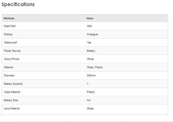 Acctim White Wall Clock, 305mm-New - Brand new item, still in OEM packaging  - Check out the images for more product details Product details: About this item Water/dust resistant to IP55 rating Suitable for outdoor use White plastic case and...View more