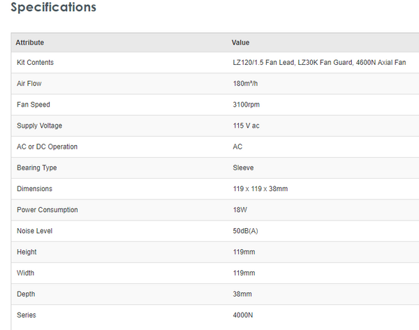 ebm-papst, 4600N-KR0 AC 180m³/h 3100rpm 4600N Axial Fan, LZ120/1.5 Fan Lead, LZ30K Fan Guard 18W 115 V ac - Brand new item, still in OEM packaging  - Check out the images for more product details Product details From ebm-papst, these...View more