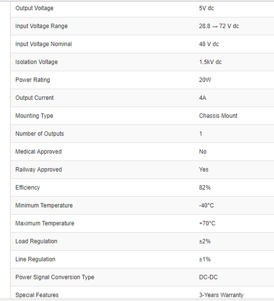 Relec Electronics Corp.  RA-4805-20W-B 20W Isolated DC-DC Converter Chassis Mount, Vin 28.8 → 72 V dc, Vout 5V dc Railway Approved - Brand new item, still in OEM packaging  - Check out the images for more product details Product details...View more