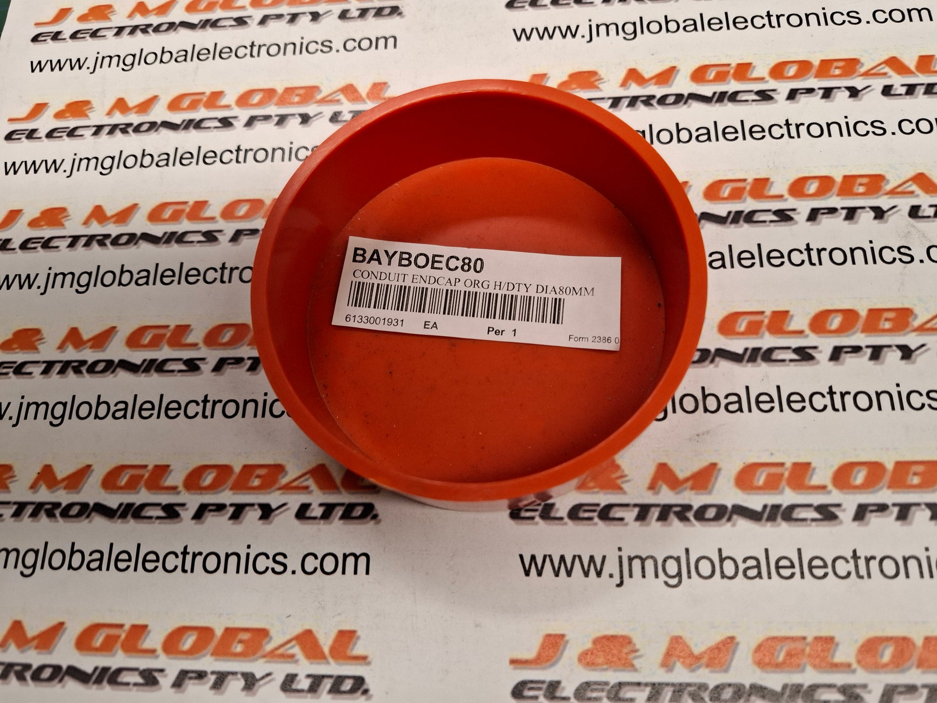 Conduit Endcap 80mm Heavy Duty Orange- Bayside Benders- BOEC80     End caps fit snugly over the conduit to prevent dust, dirt and water entering.   They can be pushed on temporarily or permanently fixed with solvent glue.View more
