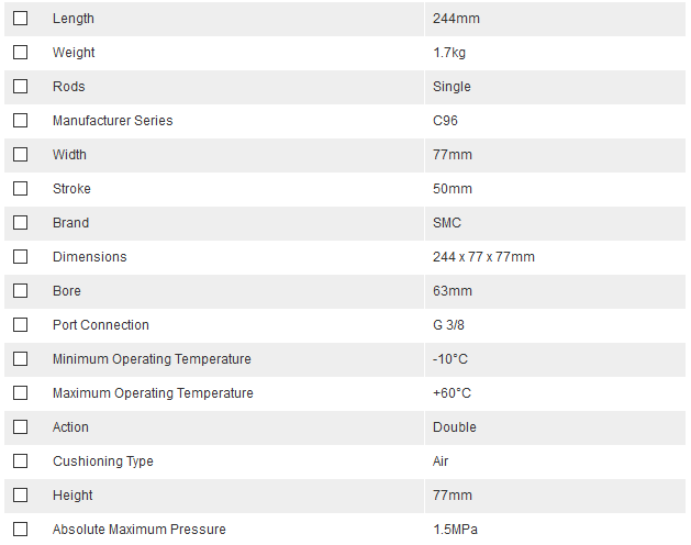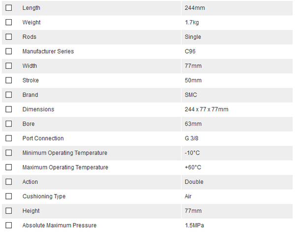 SMC C96SDB63-50 Pneumatic Roundline Cylinder 63mm Bore, 50mm Stroke, C96 Series, Double Acting - New - Brand new item, still in OEM packaging  - Check out the images for more product details Product details:- C96 series profile cylindersC96 series Profile...View more