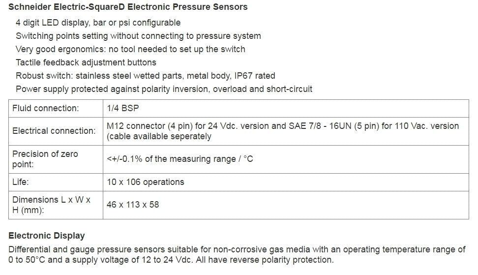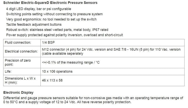 Telemecanique Differential Pressure Sensor - XMLF040D2025 - Brand New in Box Description: This Telemecanique Differential Pressure Sensor (Model: XMLF040D2025) offers a maximum pressure capacity of 40 bar. It is brand new, unused, and comes in its original OEM packaging. Ideal...View more