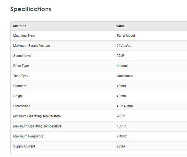 Werma 11806815 90dB Panel Mount Continuous Internal Piezo Buzzer - Brand new item, still in OEM packaging  - Check out the images for more product details Product details Features and Benefits Compact size panel mounting Continuous tone buzzers 6.3 x...View more